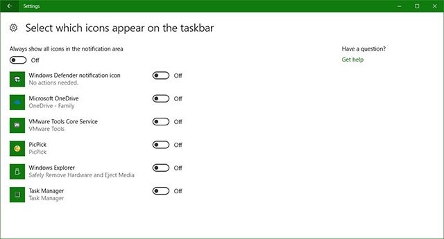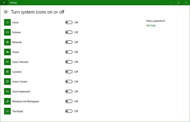 您也可以选择打开或关闭必需的栏页上的系统图标链接, 以便确认语句栏上显示的系统图标, 折行时钟、 音量、 网络、 电源、 操作中心等等。 只需关闭您不想查看的图标旁边的开关 。