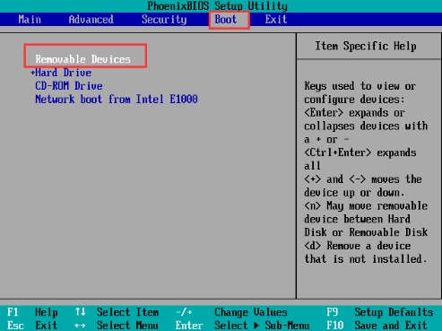 三。 我们使用 [+] 键将磁盘移动到页面的第一个位置, 然后按 f10 键来保存退出 。