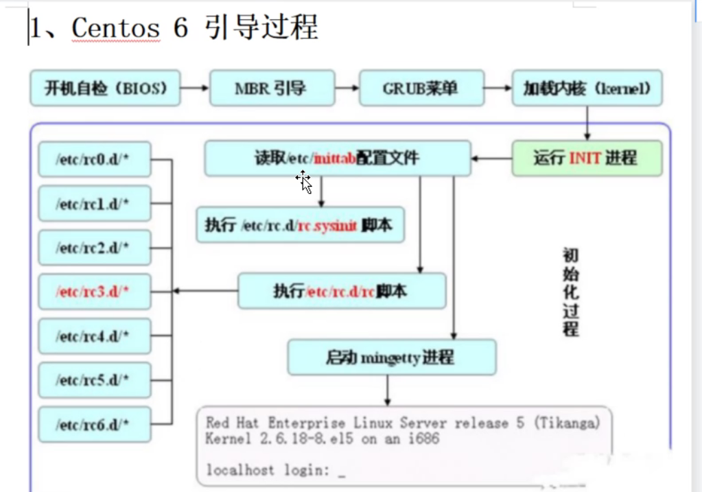为了完成进一步的系统定向进程, Linux 内核首先将系统的“ /sbin/ init” 程序装入内存( 运行程序称为进程) 。 启动程序随后完成一系列系统设置活动, 然后再等待用户登录 。