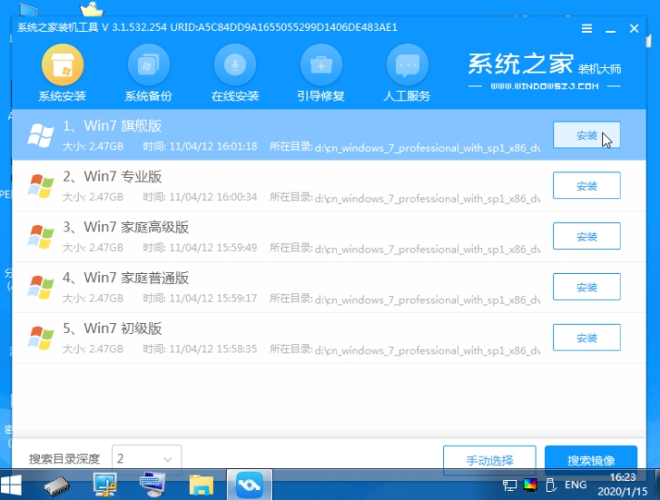 四. 在 PE 桌面上, 启动安装程序并选择您想要安装的 Win7 系统 。