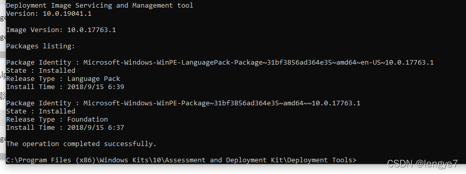 从开始菜单进入部署和映像环境,获得一个命令行窗口。
