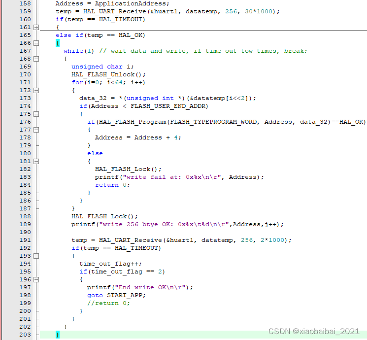 接着看接收app的烧写文件、写入flash部分的代码: