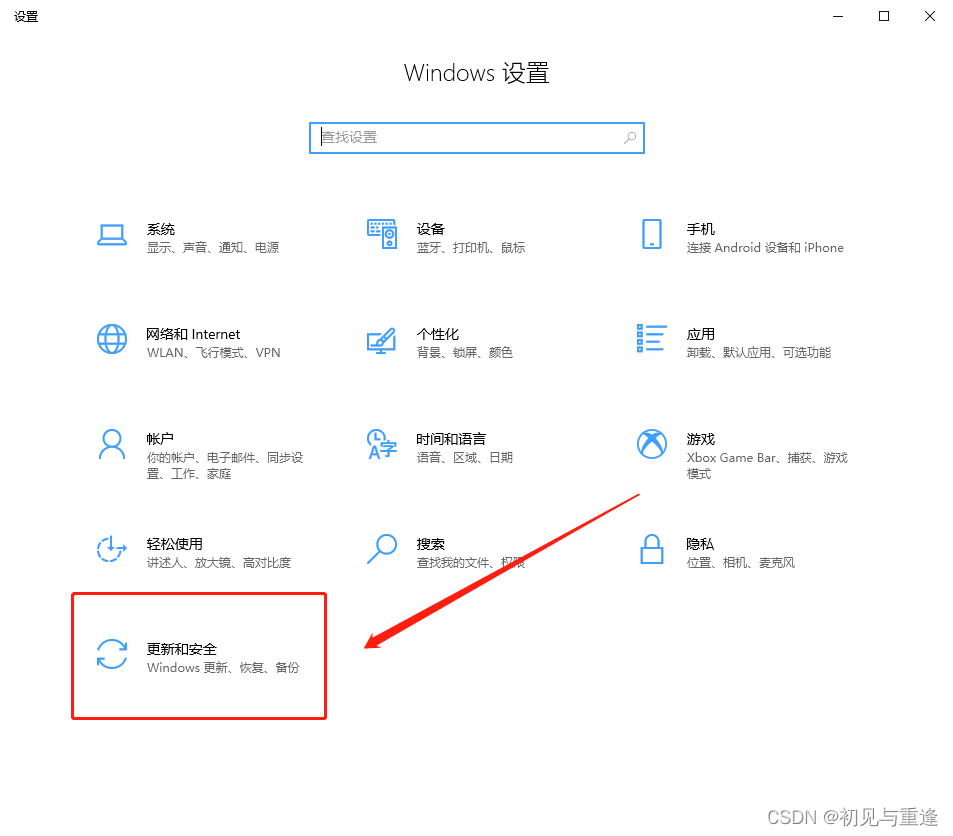 步骤②:按【Windows+i】键打开 Windows设置,选择【更新和安全】;