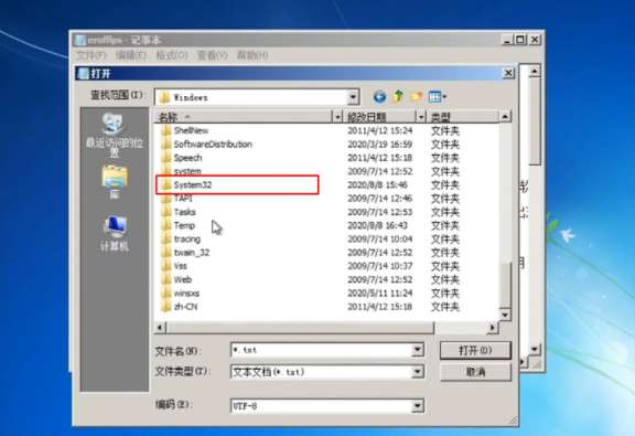 5、继续点击“文件-打开”,依次点击打开“C盘-Windows-system32”。
