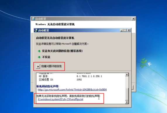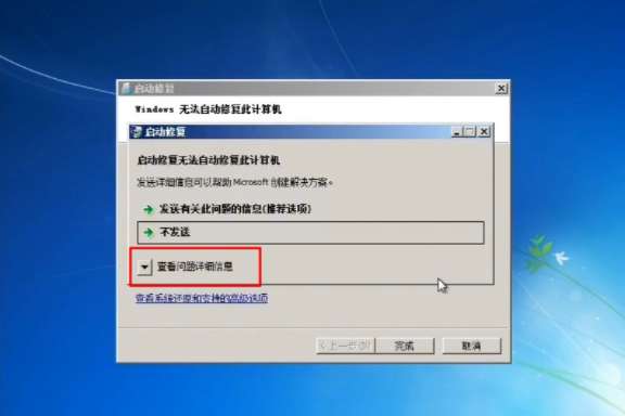 取消“系统还原”,在弹出的“启动修复”界面点击“查看问题详细信息”;
