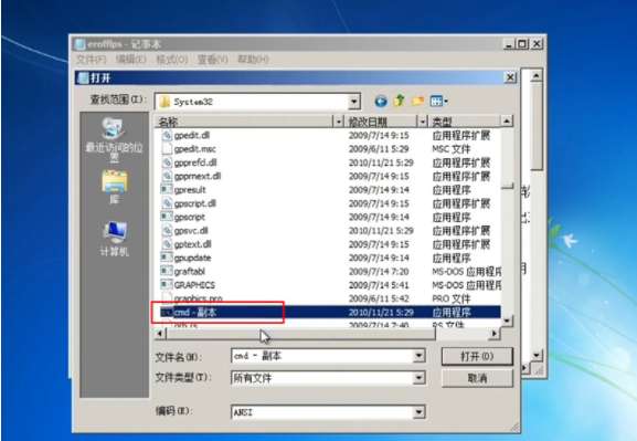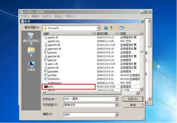 找到“cmd”文件,复制粘贴到“system32”文件夹,将cmd文件副本重命名为“sethc”;