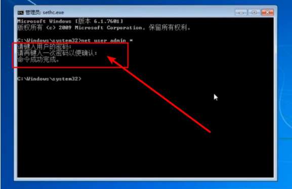 在命令界面中输入“net user admin*”,admin指的是用户名,可以根据实际情况输入;
