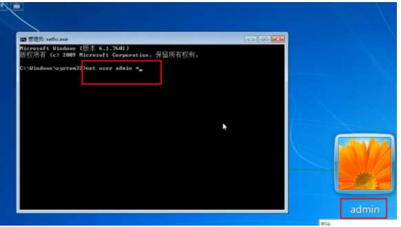 再次进入密码登录界面后,连续按五次shift键,打开cmd命令窗口,设置新密码;