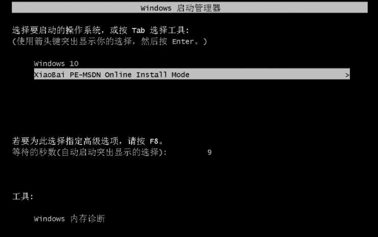 6、重启后,选择‘XiaoBai PE-MSDN Online Install Mode’进入pe系统。