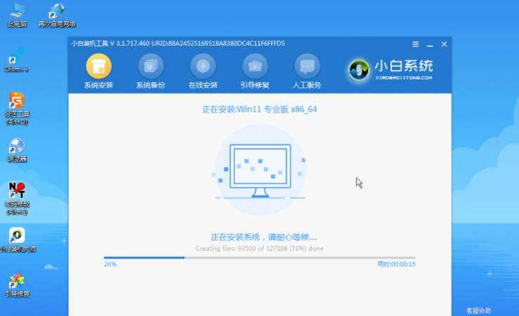 7、pe环境中,小白软件将自动执行windows11的安装。耐心等待完成即可。