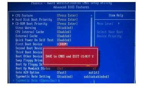 第五步、设置完成之后,按键盘上的F10键,弹出保存退出菜单,输入Y后回车,即可重启电脑,并从光驱启动电脑: