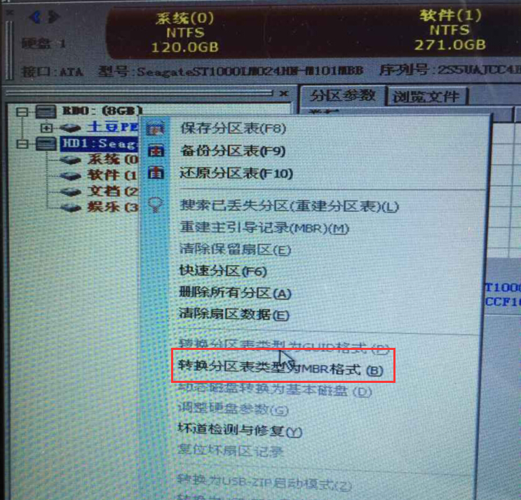 [土豆PE使用]diskgenius硬盘无法转换到MBR分区表解决办法