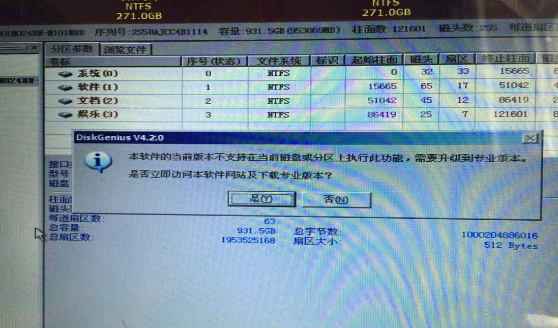 出现错误提示:”本软件的当前版本不支持在当前磁盘或分区上执行此功能,需要升级到专业版本。。。。。“