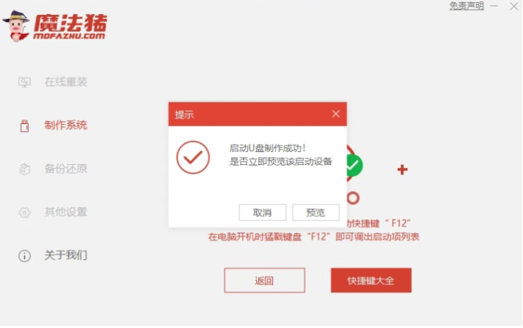 四. u- disk 制作成功后, 点击预览按钮查询计算机的启动快捷键 。