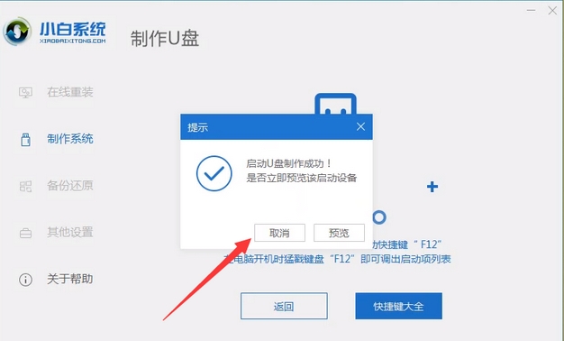 四. 当 U 驱动器启动完成后, 提示点击被取消, 如果您不知道 U 驱动器启动重组系统的快捷键, 请按快捷键搜索 。 在U 驱动器完成后, 取出U 驱动器 。