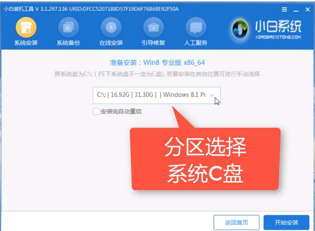 8: 选择安装到系统驱动器 C, 然后单击开始安装 。