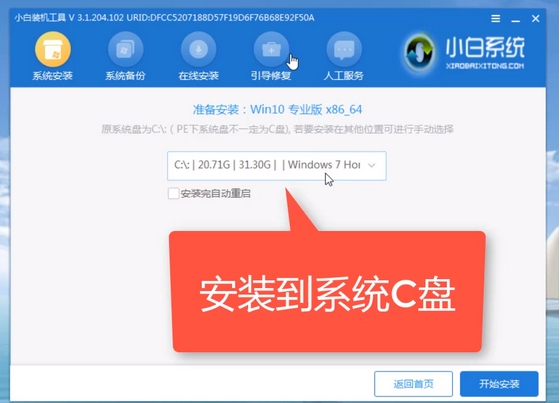 11. 选择磁盘C为系统磁盘,按安装按钮。