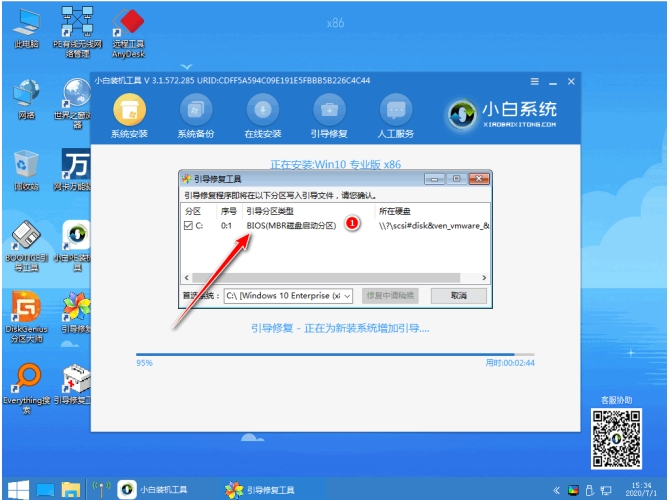 6. 在重新启用计算机后,从主菜单中选择[xiaobai]进入PE系统。