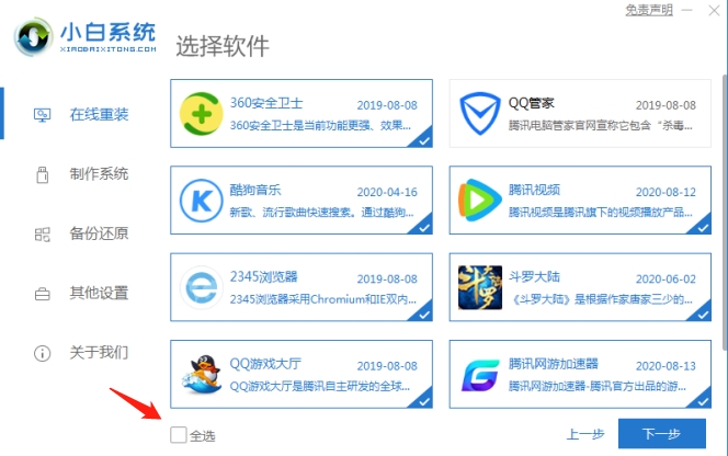 3. 您可以选择接口中通用计算机需要使用的程序,或者检查所有内容,然后单击[下一步]。