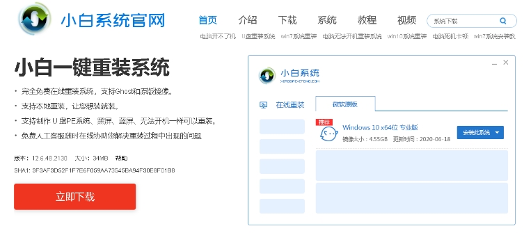 1. 首先,它下载白色一键重新装入系统的最新版本,然后导航到第一页并点击下载按钮。
