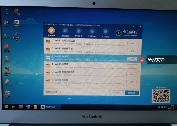 5. 分区完成后, 保存设置并退出。 打开小桌面上的小白色机器工具, 点击安装以选择必须安装的 bin11 系统 。