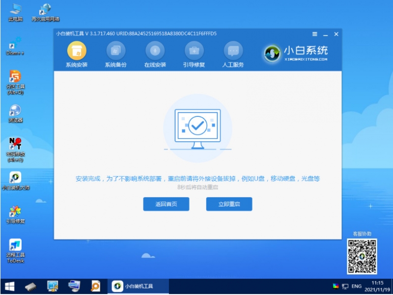 5. 有了耐心,在Pe系统到位后,白色小机器工具打开并安装了Won11系统。
