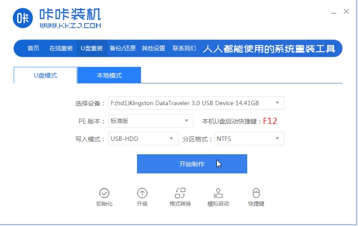1. 开始使用[单键重新装货机]工具,输入空白盘,选择[u-再装货系统]模式,并单击[开始生产]。