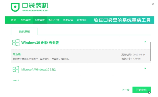 4. 输入选择接口的系统,选择需要重新装入的 Windows 10 系统,并单击 " 开始创建 " 。