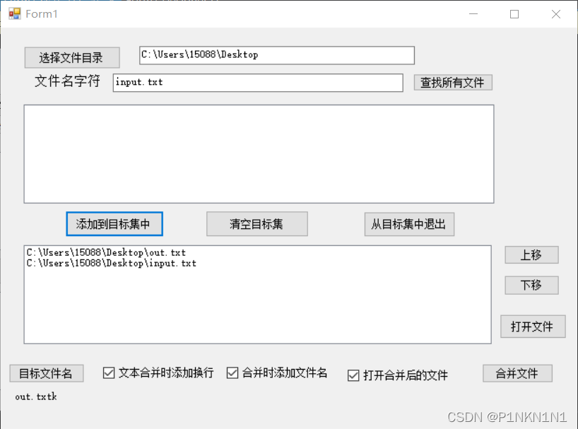 就像使用我的桌面作为目录并搜索。 我不清楚, txt 和输入. txt, 检查, 点击以添加目标浓度, 它们将出现在目标集中, 而“ 添加到目标浓度” 按钮的事件处理代码如下 :
