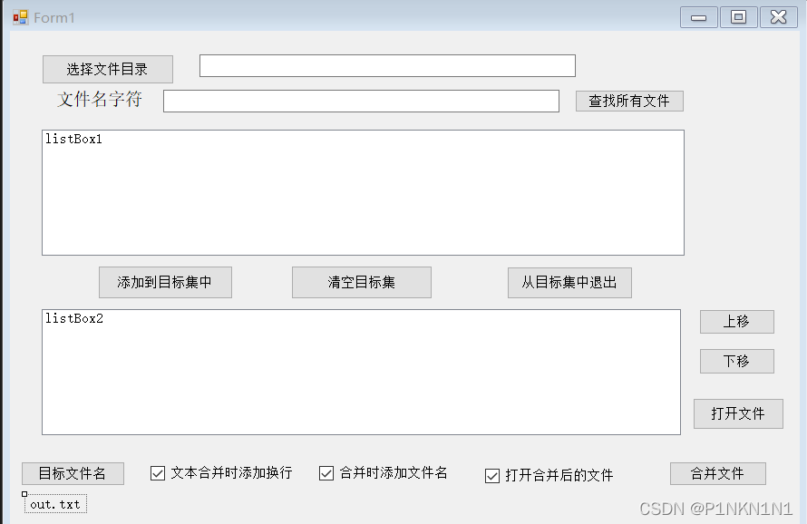 目标文件名是用于保存最终结果的文件名。 以下是按钮的事件处理代码 :