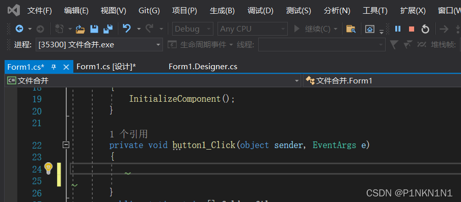 在窗体中创建按钮非常简单, 然后双击按钮打开此界面, 并输入控件的匹配事件代码 。