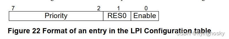 每个 LPI INTID 都由 LPI 描述文件指定一个字节。 每个条目的格式 :