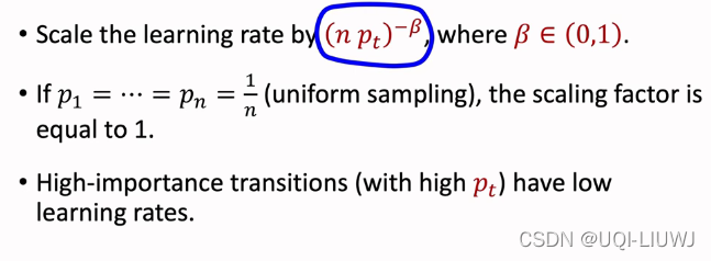 如果交易的采样概率较高,他的学习率应适当降低(以抵消与高采样概率的差异,这将导致我被采样的次数略多一点)。