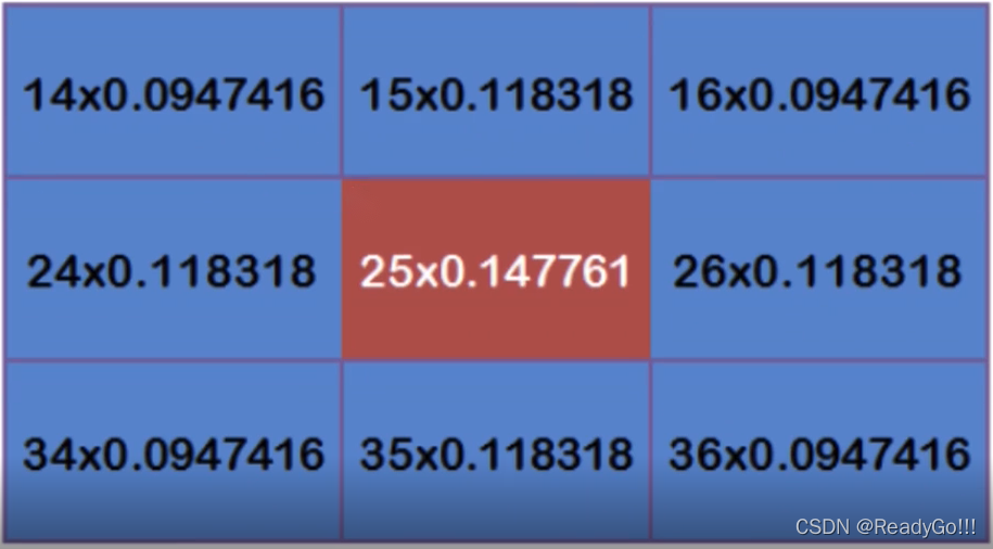 如果仅确定这9点的加权平均数,其加权总和也必须等于1,因此以上9点中的每个点除以0.4787147,最后加权矩阵
