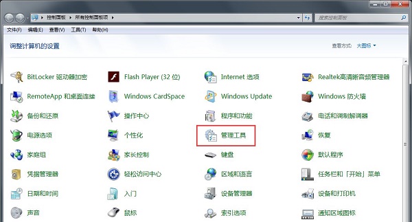 将显示模式更改为“ 大图标”, 然后在控制面板中搜索并打开“ 管理工具” 选项 。