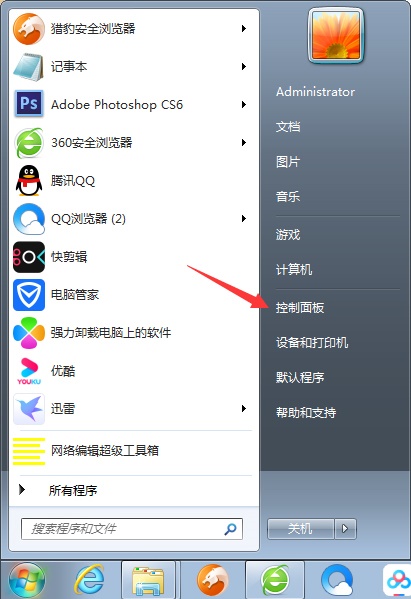 启动Windows 7 设备并导航到控制面板;