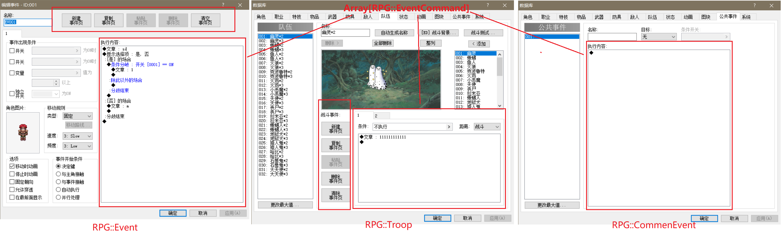 RMXP 中的所有事件页面( 敌方群的活动页和地图事件、 公共活动的事件页) 中包括一个指向事件通讯的阵列, 因为事件页面用于记录事件指示, 而事件通讯类是事件指示的类别 。
