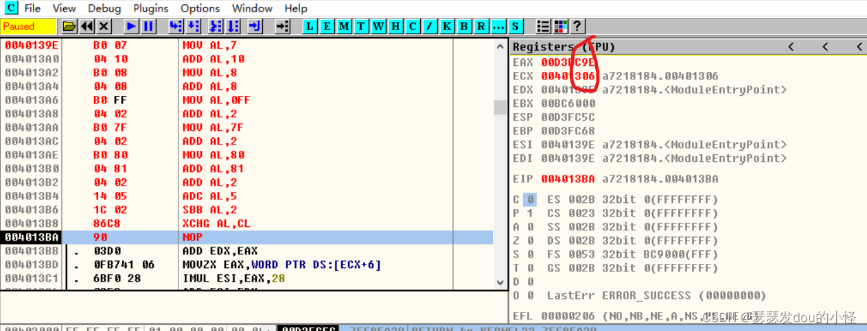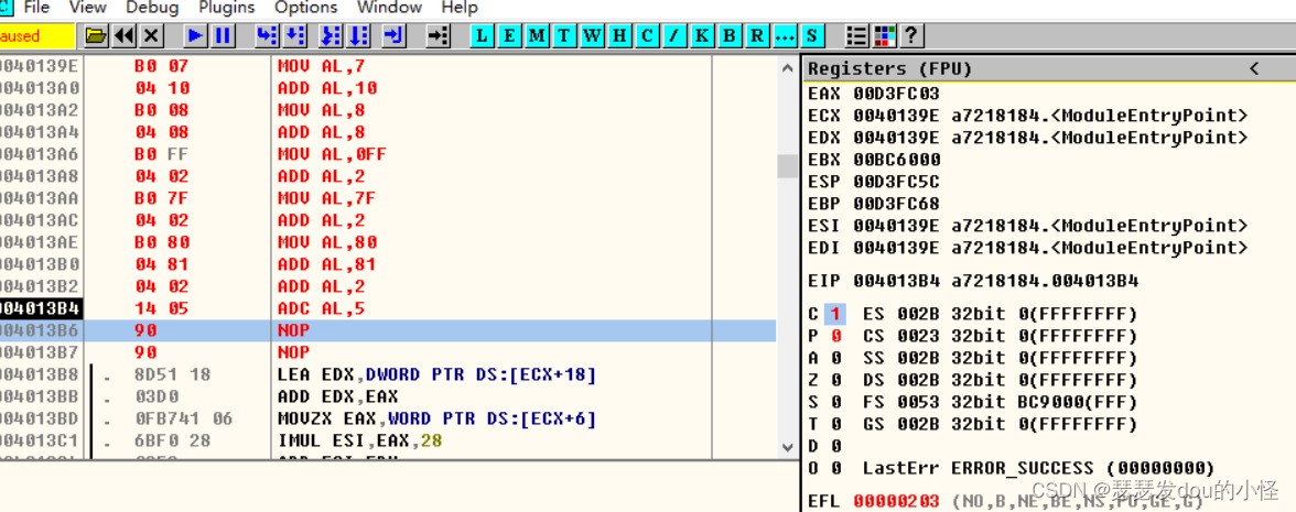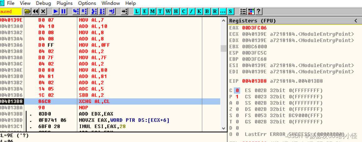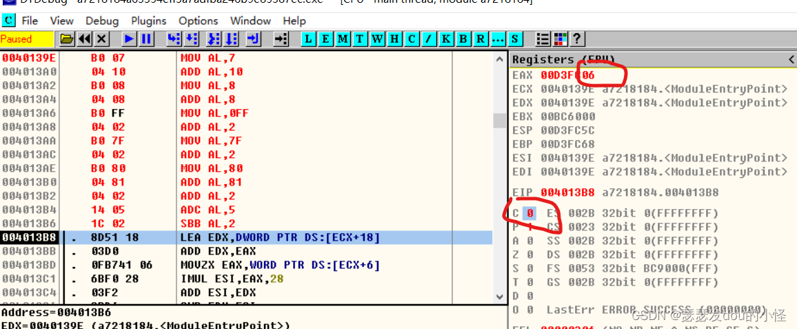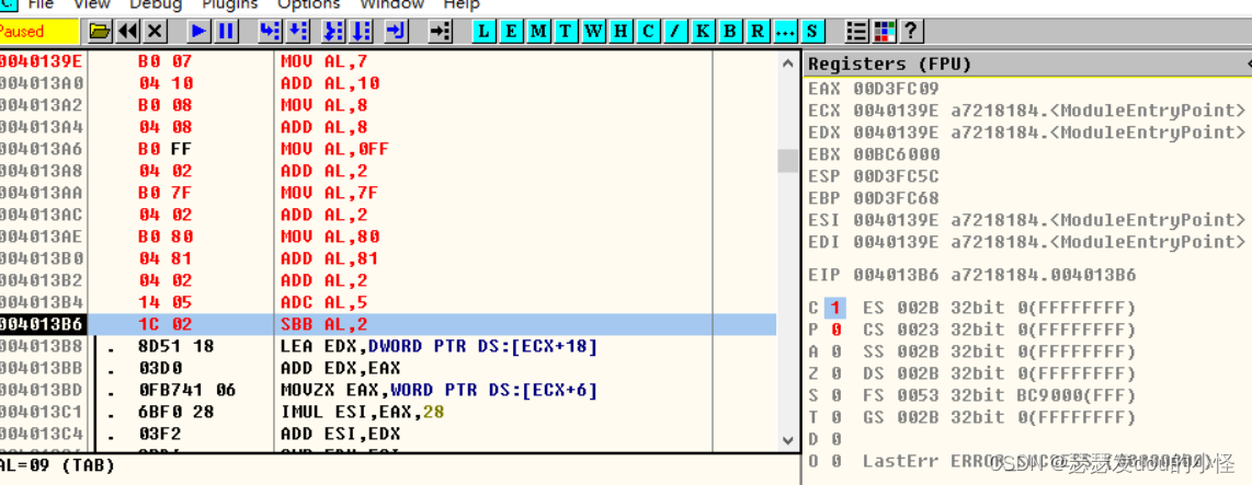 我们将要执行adc al,5 ,此时我们把C0变为C1,接着