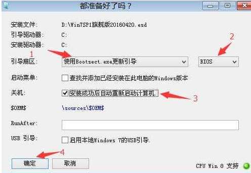 如使用WinNTSetup软件安装esd,则参照图示操作即可;