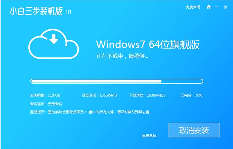 2、等待软件自动开始下载win7系统软件和驱动程序等等。