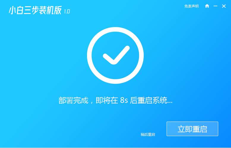 4、当提示部署完成后,选择立即重启,也可以等待软件自动重启。