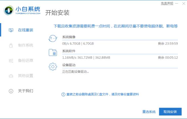 3.开始下载系统镜像文件及驱动,我们耐心等待下载完成。