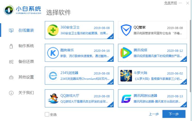 2.然后勾选需要用到的系统软件,勾选完成后,点击下一步即可。