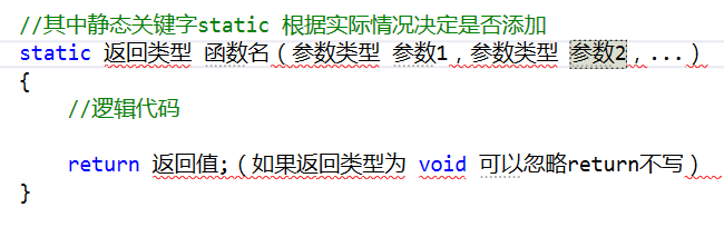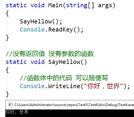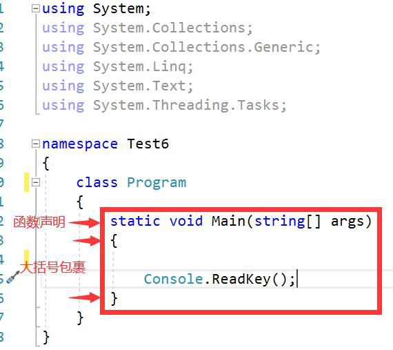 其实我们学习到现在,我们写的大部分代码都是写在函数中的。Main就是一个静态函数。函数就是包裹了代码的特殊语句块(大括号包裹的代码称为语句块或代码块),它可以被复用,提升代码的复用率,封装代码,抽象行为。(函数也可称为方法)
