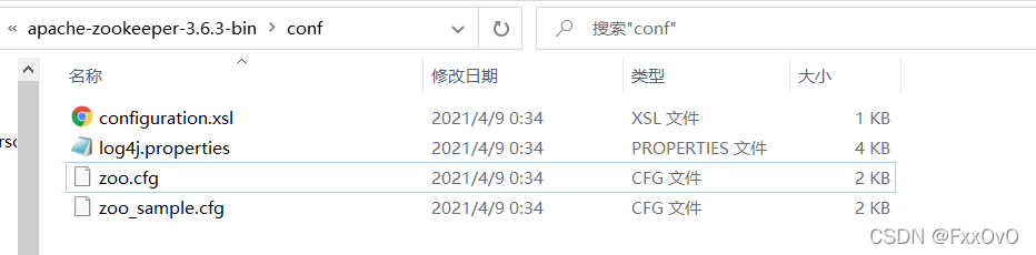 2、查看 zookeeper的conf文件夹中有无zoo.conf,没有的话复制zoo_sample.cfg改个名为zoo.conf