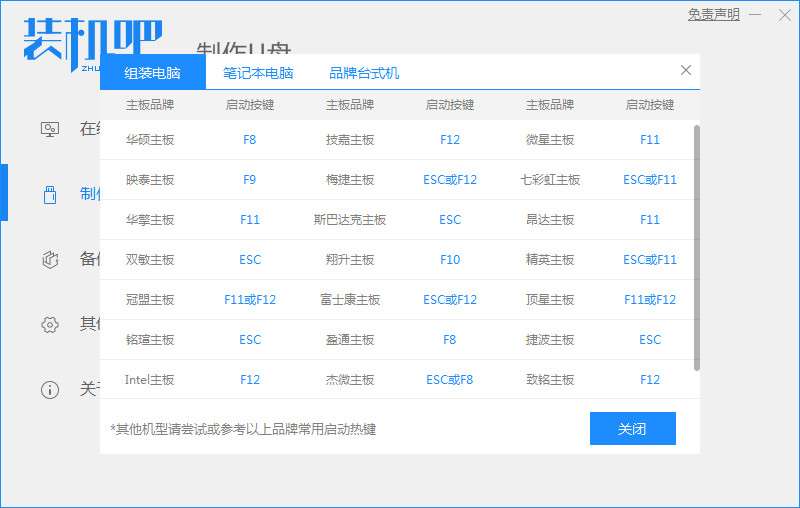 4.完成后,我们可以查看下华硕主板的启动热键,然后将u盘移除,退出软件。