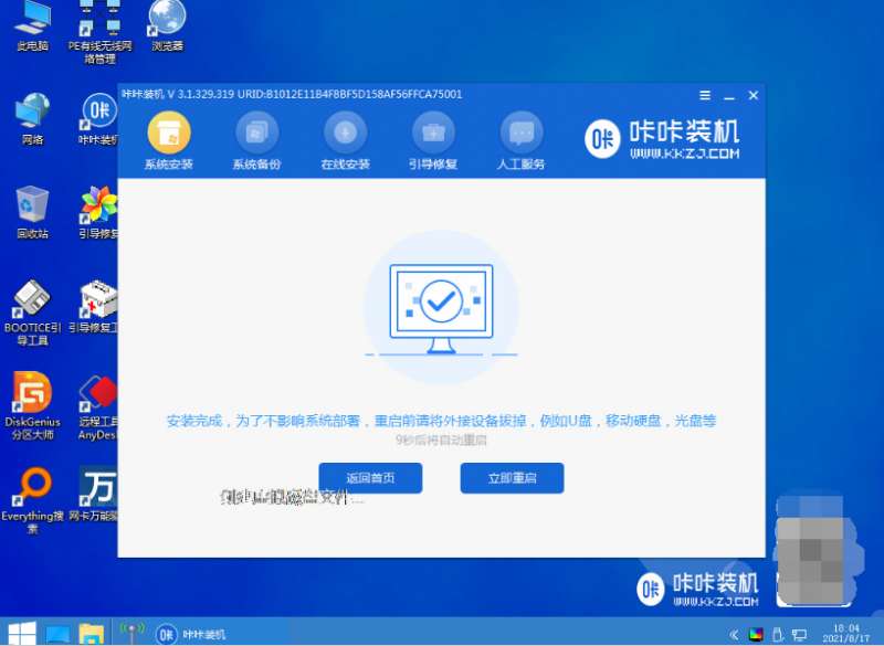 安装咔咔装机一键重装系统工具制作xp u盘启动盘;