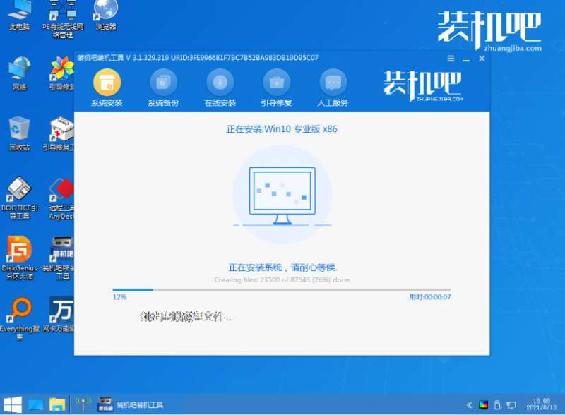进入pe系统后打开装机吧装机工具安装win10系统;