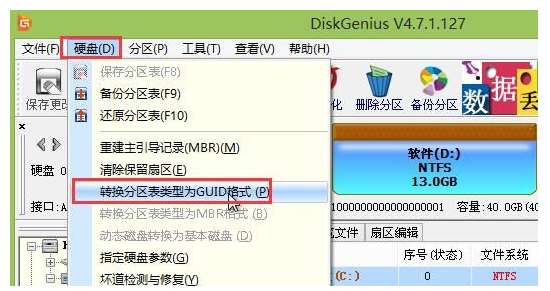 3、最后进入u盘PE系统,修改分区表格式MBR为GPT即可。
